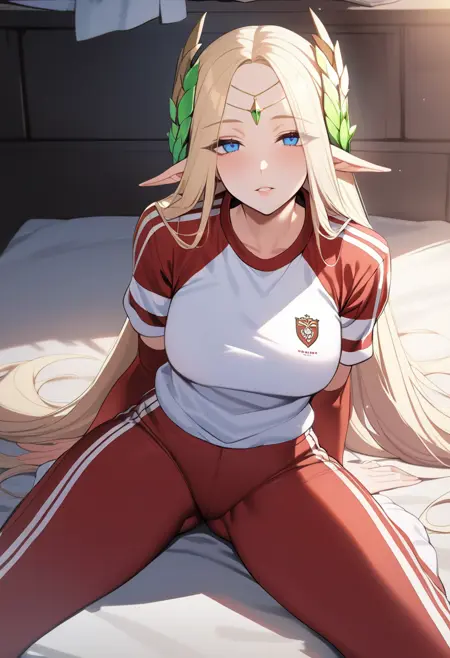 cerestiadef, 원형 머리장식, 이마 보석, 드러나는 옷, 가슴 커튼, 골반 커튼, 신부 장갑, 팔꿈치 장갑, 한쪽 허벅지 긴 양말