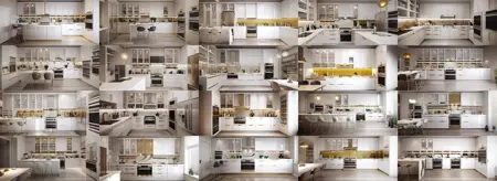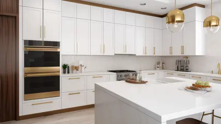 | 训练词汇 | an open concept kitten with white cabinets and gold hardware已复制! a white and gold backsplash已复制! and stainless steel appliances can be a beautiful and modern kitchen design. the white upper cabinets provide a clean and fresh look已复制! while the gold hardware adds a touch of elegance and sophistication. the lower cabinets are brown with gold hardears. the white and gold backsplash complements the cabinets and hardware已复制! creating a cohesive and stylish look. the countertops are made of quartzite with lite brown gold flecks已复制! which can add some warmth and shine to the kitchen. the quartzite's natural stone texture and pattern can also provide an interesting visual element to the design. stainless steel appliances are a popular choice for modern kitchens已复制! as they are durable and easy to clean. the metallic finish of the appliances can also add some shine and contrast to the white and gold color scheme. a wood floor can provide a natural and warm feel to the kitchen design. the color and texture of the wood can also complement the white and gold color scheme已复制! creating a harmonious and balanced look. a kitchen island with a waterfall stone can add a luxurious and elegant touch to the design. flowers on the countertop已复制! and 3 gold pendant lights over the island. the waterfall stone feature means the countertop extends down the side of the island creating a waterfall effect已复制! |