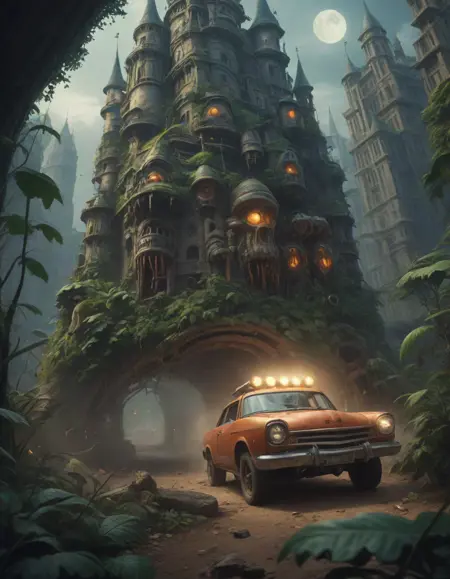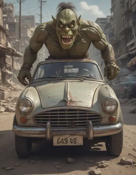 6개의 슬라이더를 실험적으로 병합하여 영화의 차량 추격 장면, 우스꽝스러운 표정, 달의 엘프, 환각 여행, 오르크, 튀어나온 눈을 생성합니다. 독특한 스타일. 0.7-1 강도에서 예시 제공.
