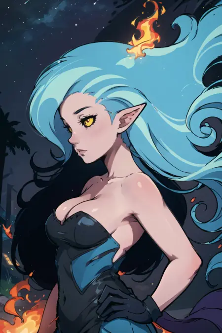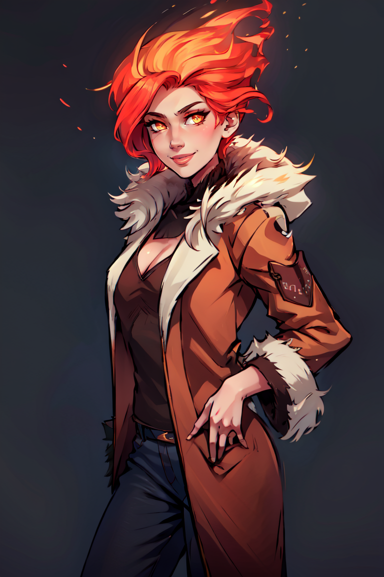今後、このLoRAで生成した画像を基に、異なる炎や髪の色を含む新しいデータセットを作成し、炎の色を簡単に変更できるようにしたいと思っています。
