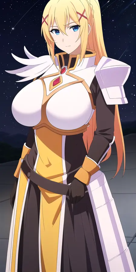 Well, here is our favorite masochistic crusader. As a random factoid the first AI training i did was an embedding of Darkness. It was crap but recognizable, tried other TI and they were crap but recognizable. Thus I tried those new thingies called LORAs and here we are.