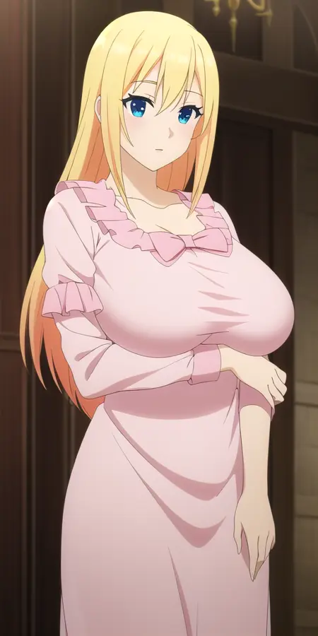Pink_nightgown_frilled_dress_see-through_Pink_bowtie: Her second sleeping gown the pink one, the white one was a bit meh.