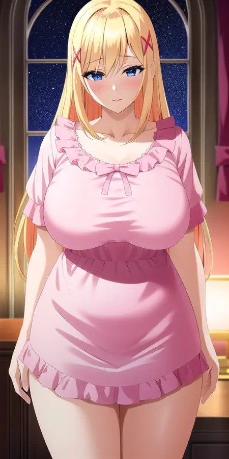 Pink_nightgown_frilled_dress_see-through_Pink_bowtie: Her second sleeping gown the pink one, the white one was a bit meh.