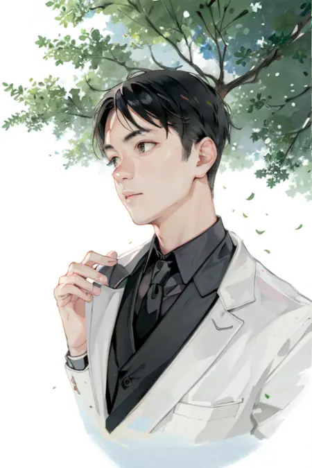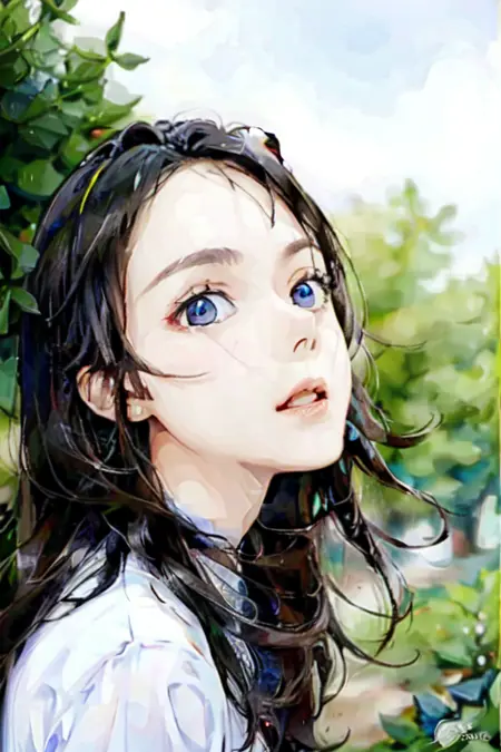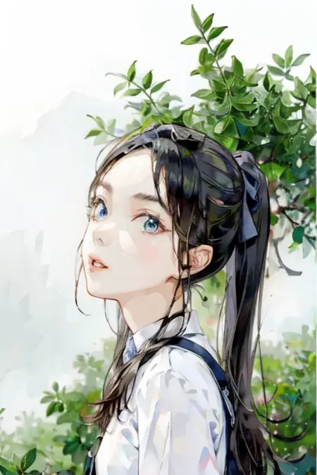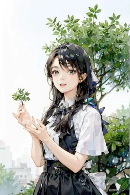 1girl, hill, tree, ultra high res, detailed shadow, best quality, (front lighting), lora:shuicai_v1:1