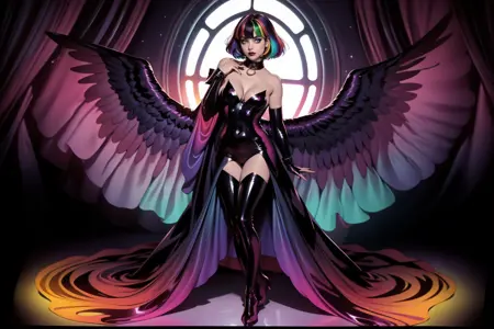 t4ylwymmd로 호출하세요. (손목 커프스) [배꼽 절개부], 망토, 칼라, (페시넷 스타킹:1.2, 허벅지 부츠), 팔꿈치 장갑, 손목 커프스. 원하는 결과를 얻기 위해 가중치를 조정해봐야 할 수도 있는데, 그게 재미의 절반입니다.
