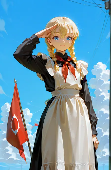 在保留裙装与围裙组合的基础上,女学生校服引入了可拆卸的衣领和袖口。象征不同年龄的色彩被统一的深棕色取代(这种低调的色彩有助于学生集中注意力)。裙长也发生了变化,从过去及踝的长裙改为略高于膝盖,以便于学生活动。至于围裙,则延续了旧习:女生平日穿黑色,节假日和重要场合穿白色。对于女学生,新规定除了统一着装标准外,还对发型提出了严格要求:女生头发必须编成辫子,并佩戴发带和丝带装饰,但其颜色必须与围裙相匹配。通过标准化的大规模生产,新校服迅速遍布苏联各地的商店,低廉的价格几乎每个家庭都能负担得起。然而,对于一些经济条件较差的家庭,每年更换一次校服仍非易事,因此他们通常会购买稍大一号的校服,以至少穿几年。