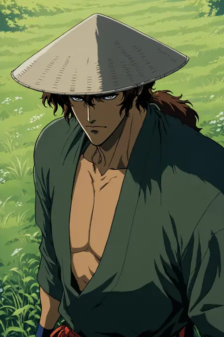 达官 - (年老,老者,草帽,斗笠,袴,外褂,手杖)