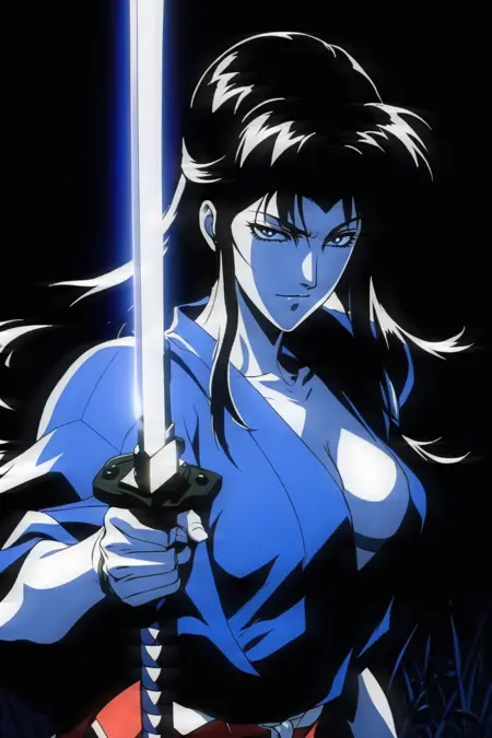 In the classic Madhouse Studios style (with Yutaka Minowa character designs) from the 1993 film Ninja Scroll.