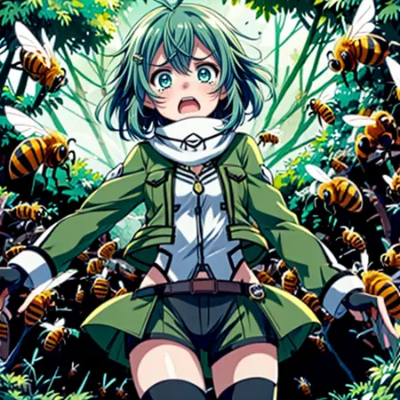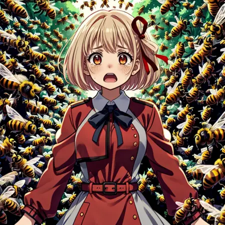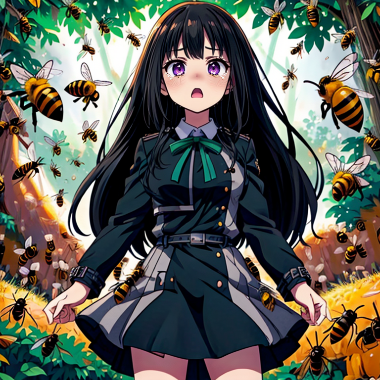 I created a scene where the person I like is surrounded by a large number of bees using LoRa. I used an image of being surrounded by a swarm of bees, and the result showed scenes where the bees surrounded the person and stayed on their clothes. Furthermore, I was able to specify the location, such as a forest, for image generation. It also worked with a strength setting of 0.4.