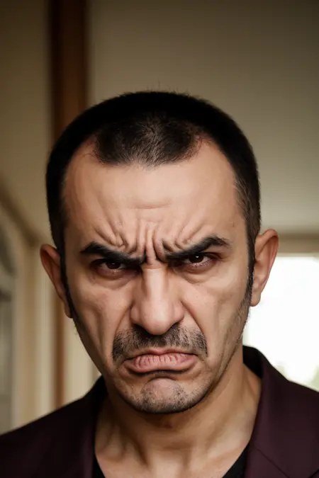 화난 얼굴 표현. SD가 과장된 표현으로 인코딩하는 것을 덜 연기적이며 더 진정성 있게 조정하며, 다른 표준적인 표현들과 더 잘 융합되도록 돕습니다.