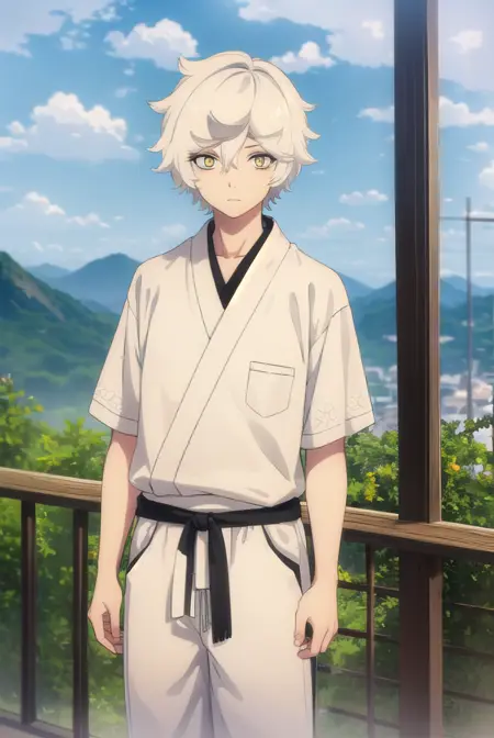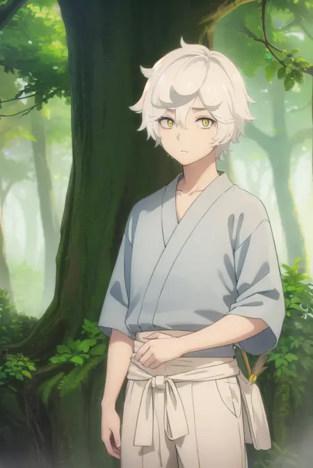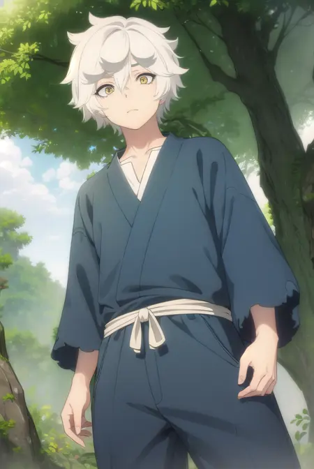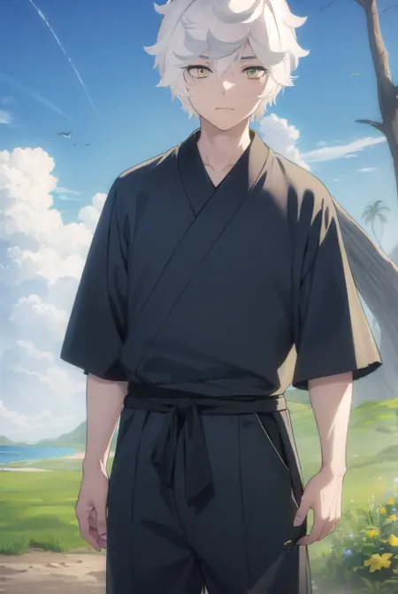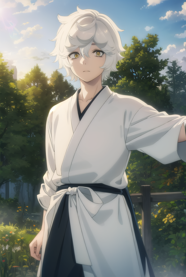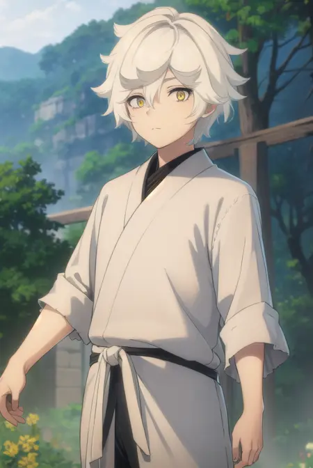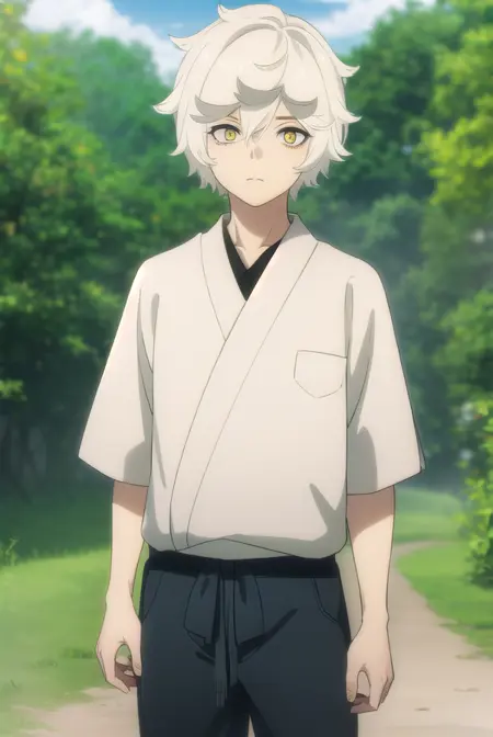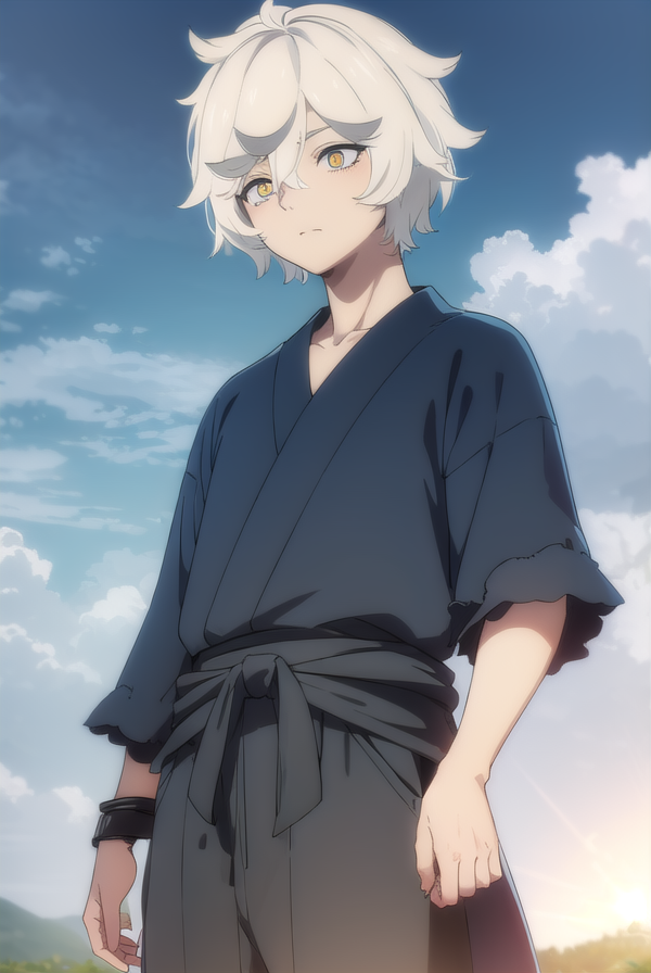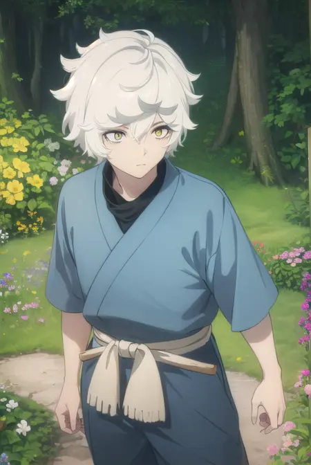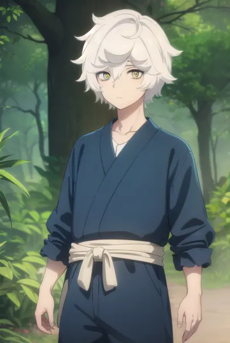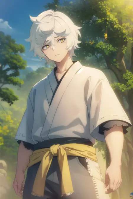 gabimaru, short hair, (yellow eyes:1.3), white hair, male focus,