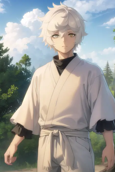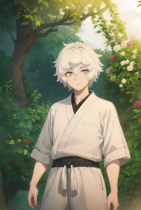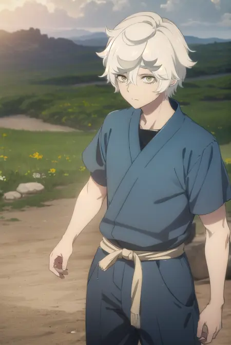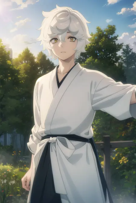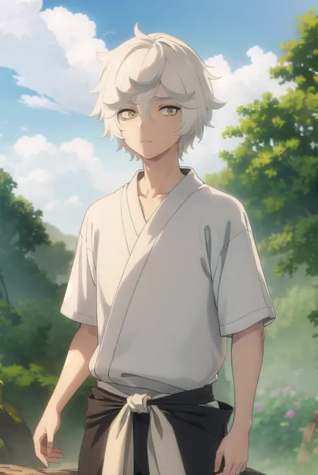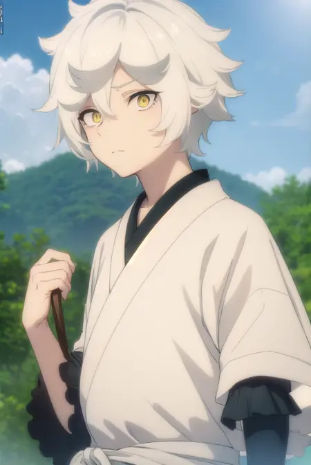 gabimaru,短发,(黄眼睛:1.3),白发,男性焦点,
