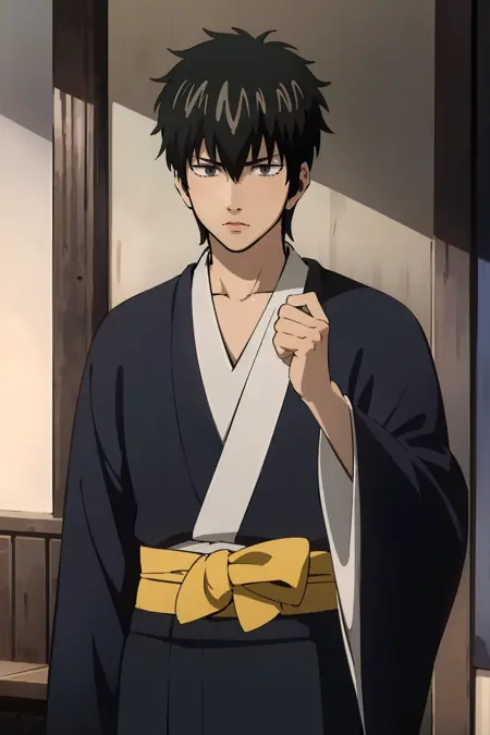 Regular Kimono: black kimono, sash