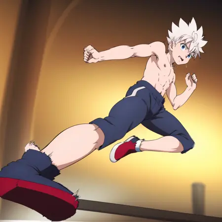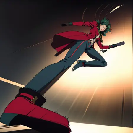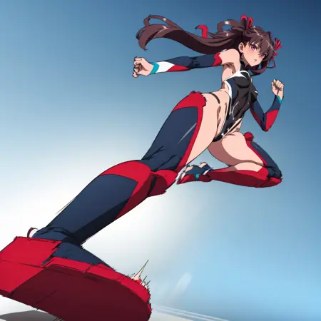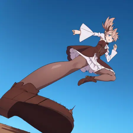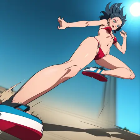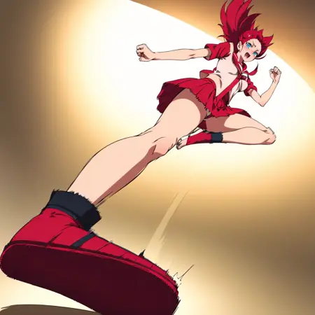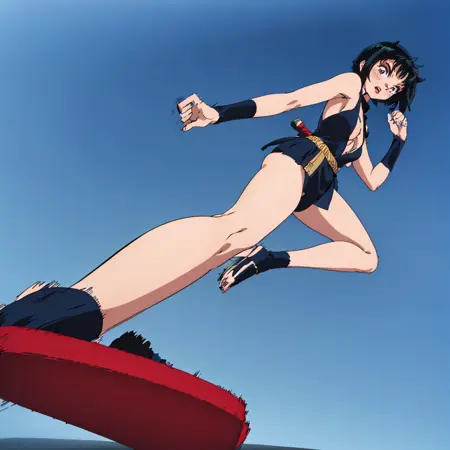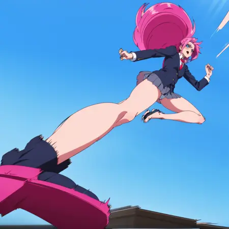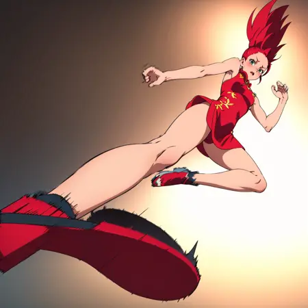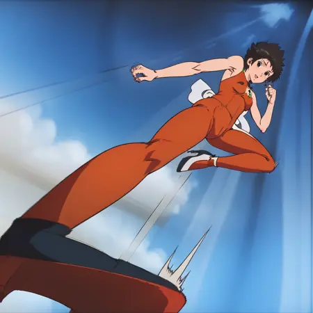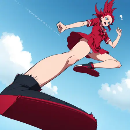 高く飛び上がり、その勢いで鋭い蹴りをする様子を描く為のLORAです。