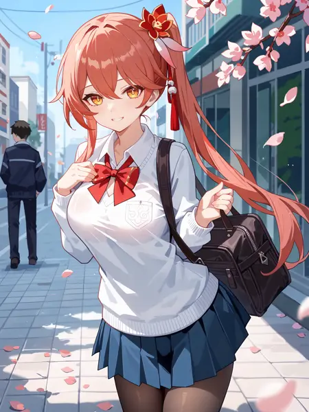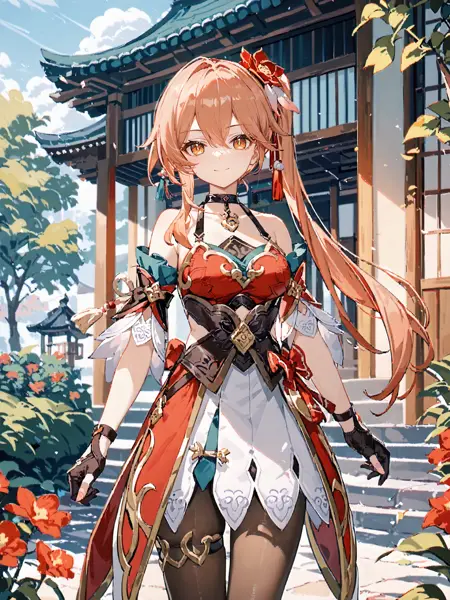Not all additional prompts are required for generating the costume, remove some as you wish. The default costume can be changed without emphasizing the costume prompts at most of the time. Weight recommendation is 0.7~0.9, lower it if you see irremovable clothing.