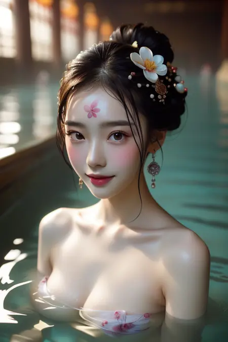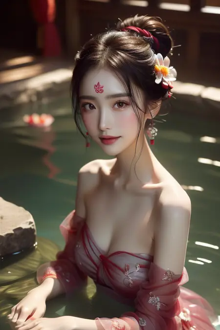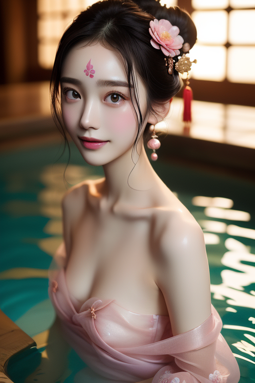 唐風溫泉美人是我對古裝風格的嘗試,1.0 在寫實模型上會略帶2.5D感,所以權重不宜太高…溫泉也容易跑出來!😑