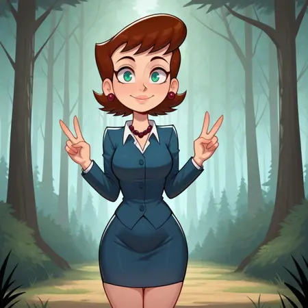 LilaTest, 1girl, solo, brown hair, short hair, green eyes, earrings,