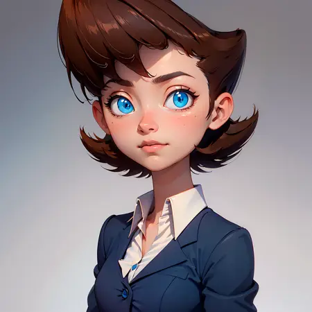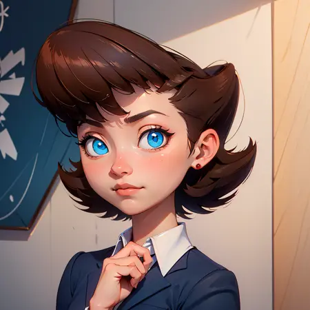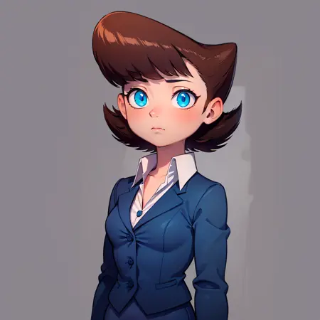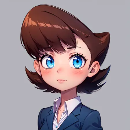 1girl, Lila test, formal, suit, jacket, blue skirt, pencil skirt , blue eyes, brown hair, white shirt, short hair,