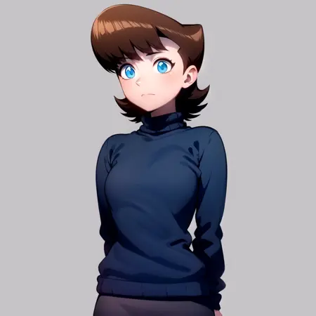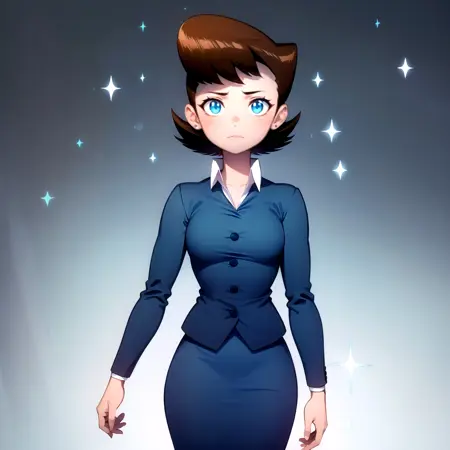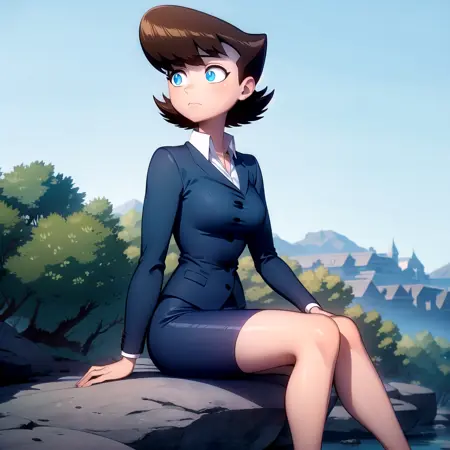 solo, 1girl, Lila test, brown hair, short hair, blue eyes, blue suit, formal, blue suit, pencil skirt,