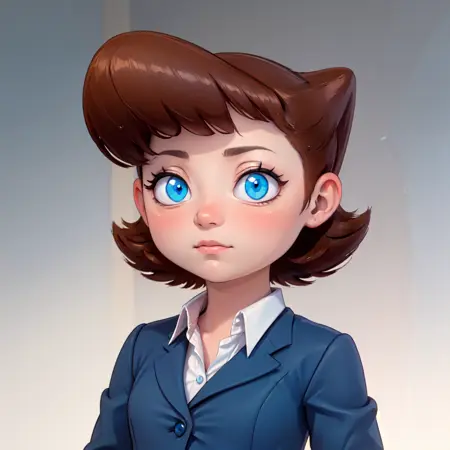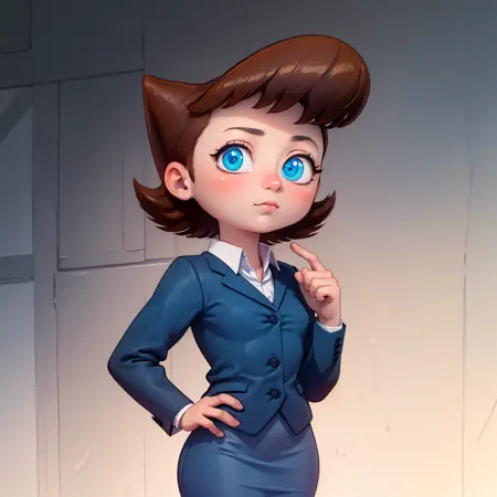 1girl, Lila test, formal, suit, jacket, blue skirt, pencil skirt , blue eyes, brown hair, white shirt, short hair,