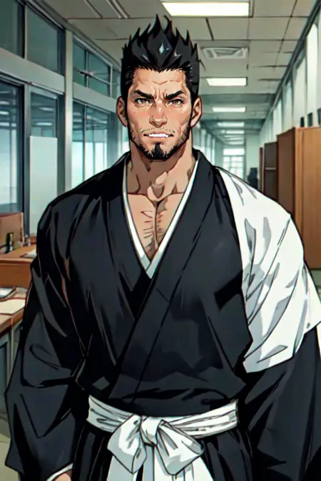 动画角色baradaddymuscularhandsomeasianbleachmuscular malemasculineblack hairbrown eyesyaoikimonoanime characterjapanesemalemanshort hairjapanese clothesasian manbearddoctorcharactershairymature malemarriedhunkdilfmale charactermuscular manstubbleshairy manisshin kurosaki2000s animechinstrap beardhairypecsjapanese manchin curtain