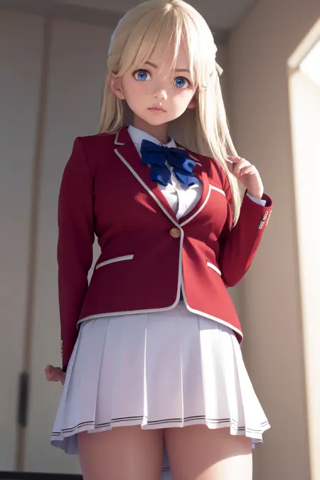 衣装のトリガー:school uniform red jacket white shirt white skirt white ribbon