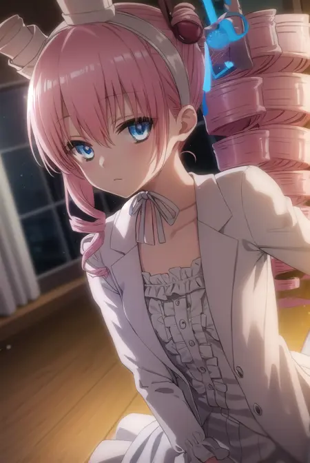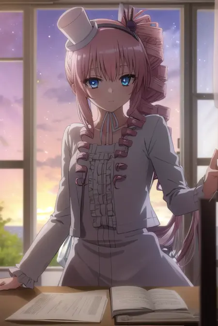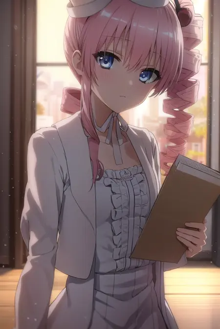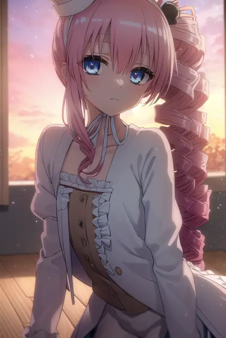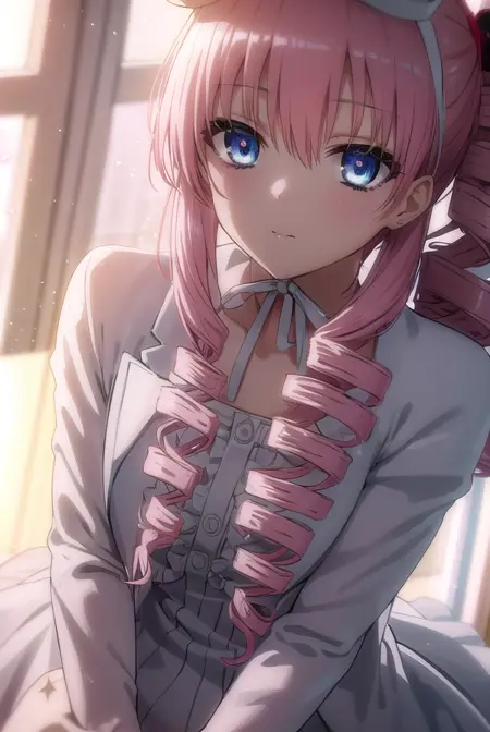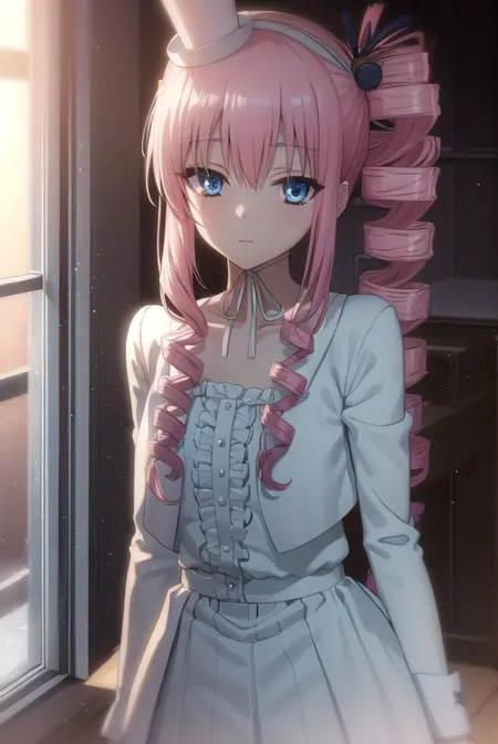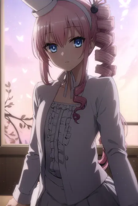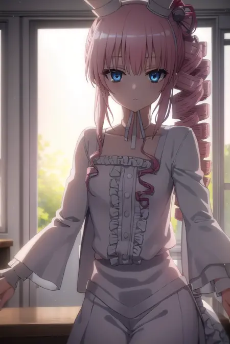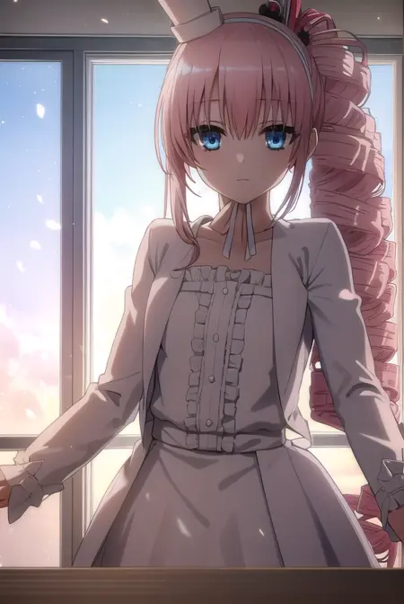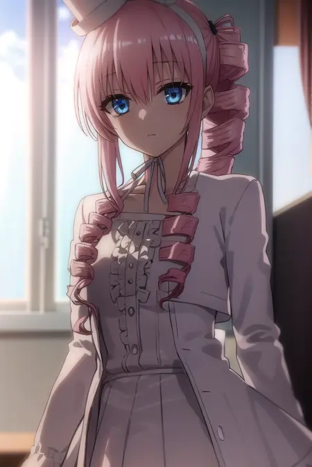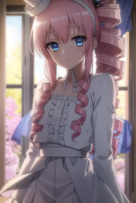 chris, long hair, blue eyes, pink hair, drill hair, side ponytail,