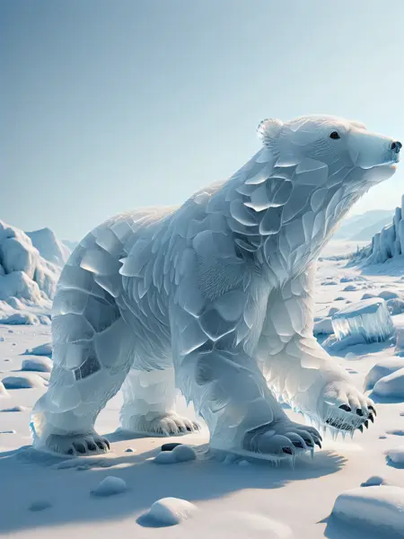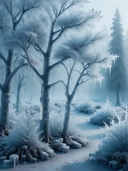 This LoRA gives things that frozen look. Specifically trained to make things look like they're made of ice and can do that more often than not - other times it'll just make the subject/object just look frozen.