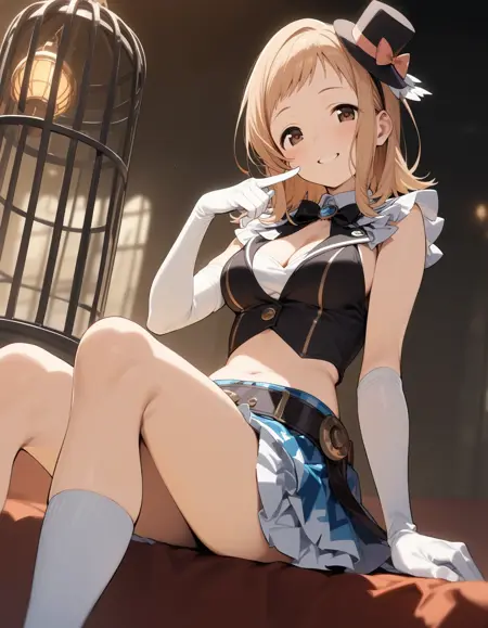 おさげが出やすい場合はnegative promptに pigtails を追加してください。