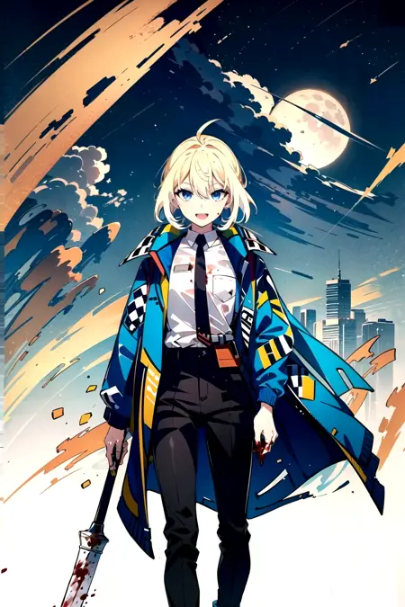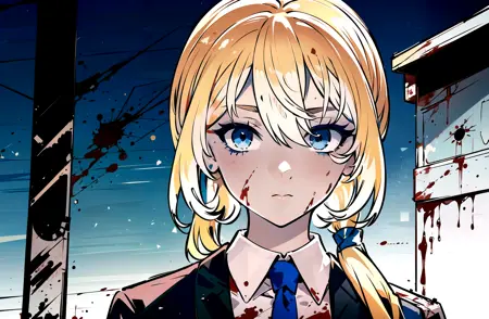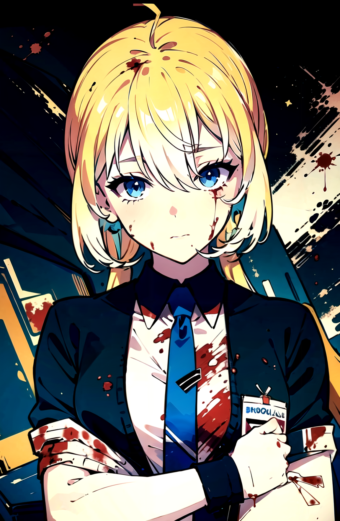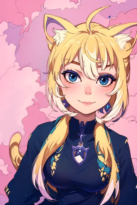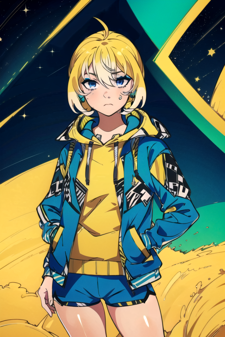 better with: <lora:planya:0.95>, planya, blue eyes, short hair, blonde hair, multicolored hair, ahoge, hair between eyes