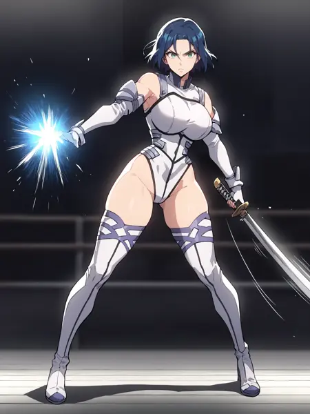 holding sword, katana, torn leotard, covered nipples, cameltoe