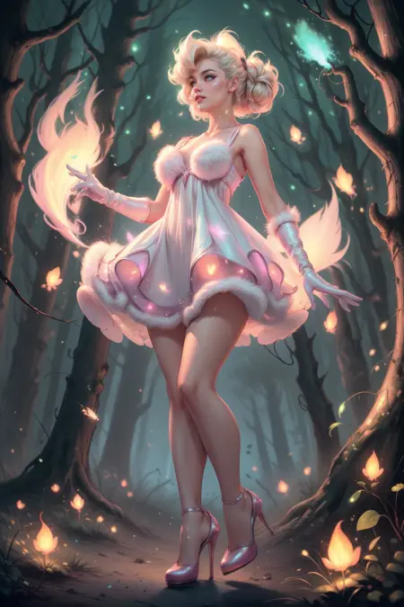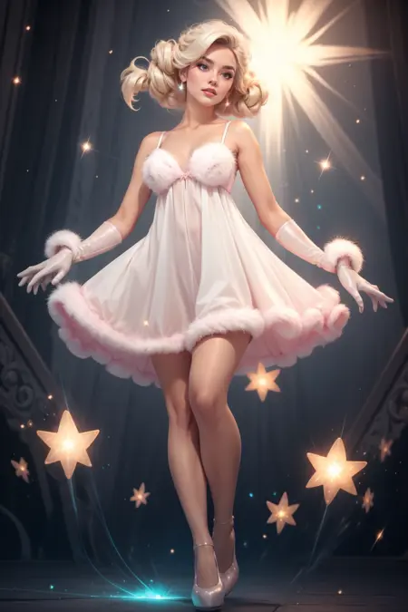 This is the pink dresses (negligee) worn by the fembots. It can go see-through, or just be a regular dress. I left fur/fuzz out of the training intentionally so it can be more versatile, so you can add Fur or fuzzy to get the pink fuzz at strength.