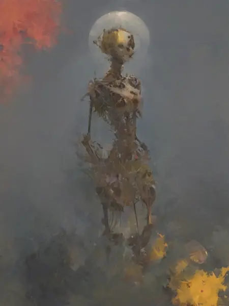 It's not really meant for creating something recognizable and i wouldn't actual use any prompts for my purpose. Just something that pretty much produces a chaotic blob of colors and shapes i can use as a base for digital painting.