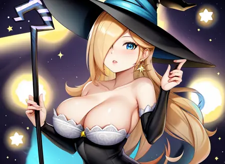 캐릭터로 '마법사'를 사용하고, 그녀의 의상은 마녀 드레스와 마녀 모자로 지정하세요. 대부분의 예술作品는 그녀의 기본 복장만을 담고 있어서 각 개념을 분리하는 데 다소 어려움이 있었으며, 여전히 사용 가능하지만 일부는 혼란이 발생할 수 있습니다. 또한 그녀가 지팡이를 들고 있는 모습도 가능하지만, 일반적으로 발생하는 불안정함이 따릅니다.