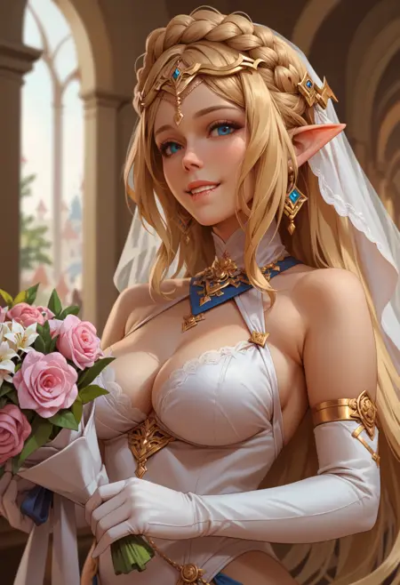 这个超有趣。更像一位华丽的新娘,当给她金色的头发、尖耳朵和王冠编发时,就变成了塞尔达。不一定要是塞尔达,也可以是任何人,甚至就是塞尔达。(开玩笑的。)SD不就是这么搞笑吗?
