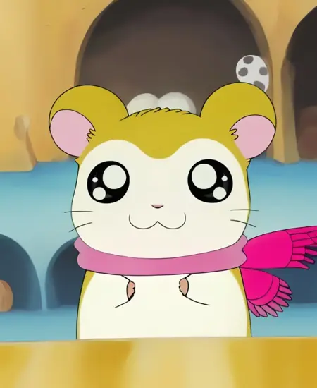 lora:hamtaroByDom83_v10:0.9, solo, Pashmina, Mafurā-chan, 仓鼠, :3, 围巾, 黑色眼睛,