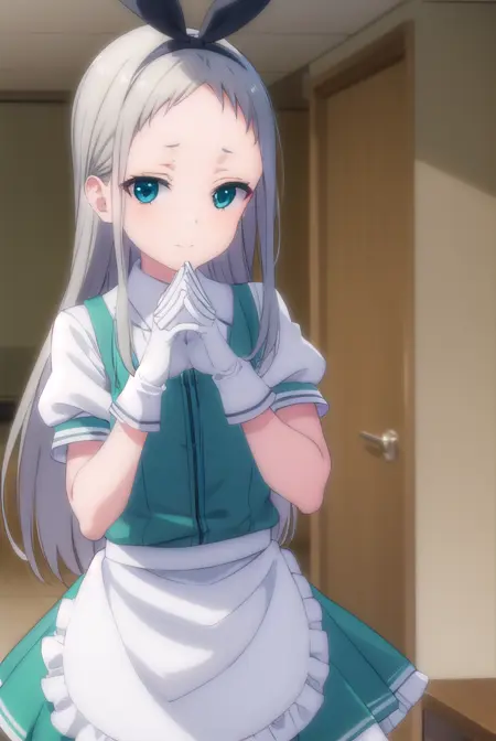 手袋, ドレス, 短い袖, フリル, フワフワの袖, 白い手袋, エプロン, フワフワの短い袖, ウエストエプロン, 白いエプロン, フリル付きエプロン, ウェイトレス,