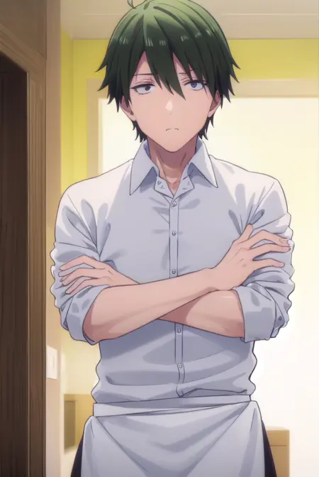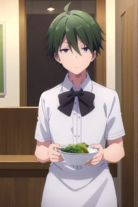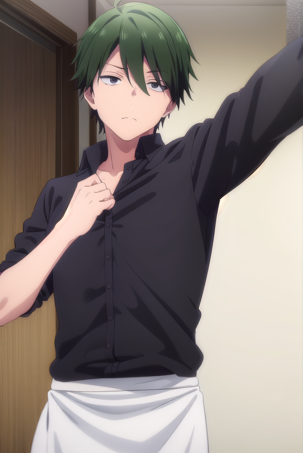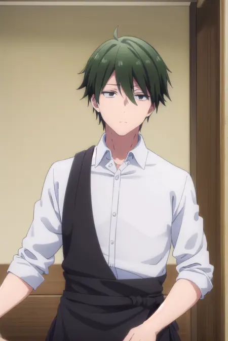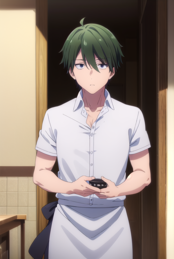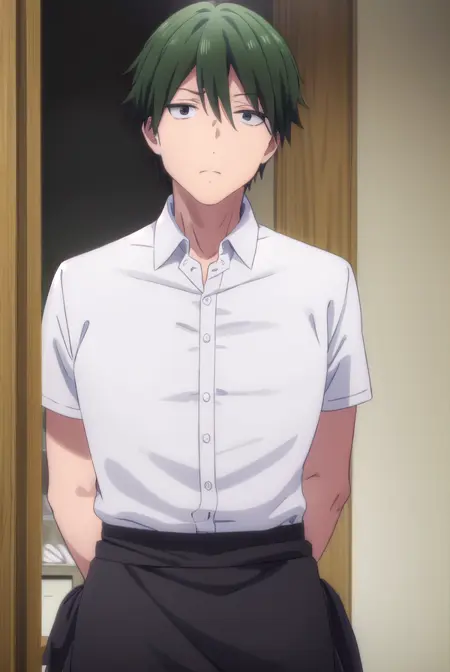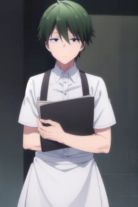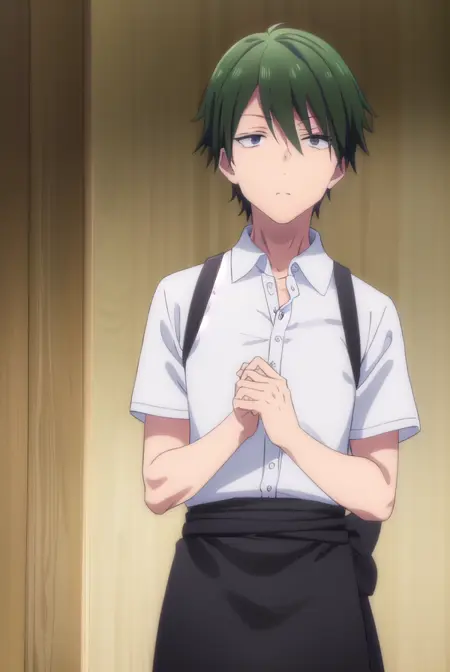 shirt, apron, waist apron, waiter, shirt, white shirt, collared shirt,