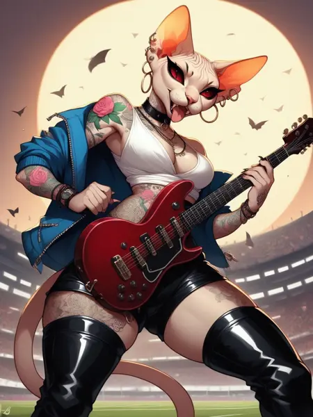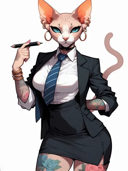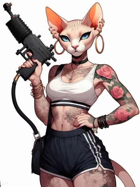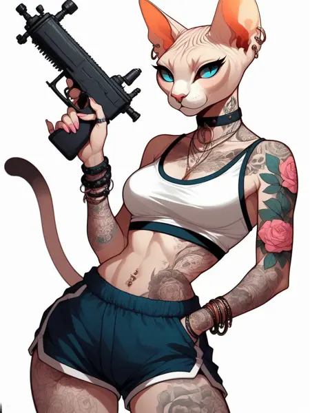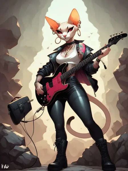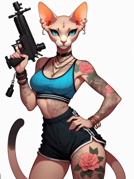 这并不完美,但你可以创作出一些酷炫的猫,而不会让它们看起来像《龙珠》里的比克(大多数关于斯芬克斯猫的奇怪粉丝艺术都是关于他的)。