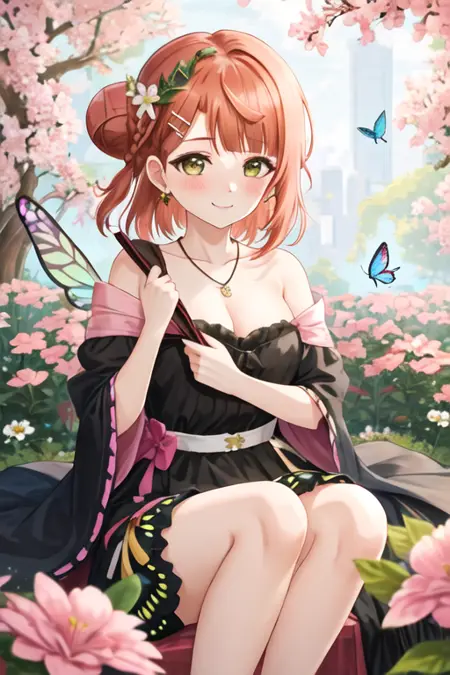 トリガー語はuehara_ayumu_loveliveschoolidolfestivalallstars、推奨タグはbest quality, masterpiece, highres, solo, {uehara_ayumu_loveliveschoolidolfestivalallstars:1.15}, bangs, medium_hair, yellow_eyes, hair_bun, hair_ornament, single_side_bun, smile, blush, orange_hair, pink_hair, braid, swept_bangs, blunt_bangs, half_updo, green_eyesです。