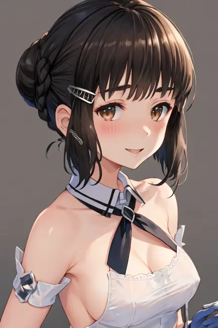 The trigger word is myoukou_kantaicollection, and the recommended tags are best quality, masterpiece, highres, solo, {myoukou_kantaicollection:1.15}, hair_ornament, brown_eyes, hairclip, black_hair, hair_bun, single_hair_bun, short_hair, breasts, braid, blush, braided_bun, brown_hair.