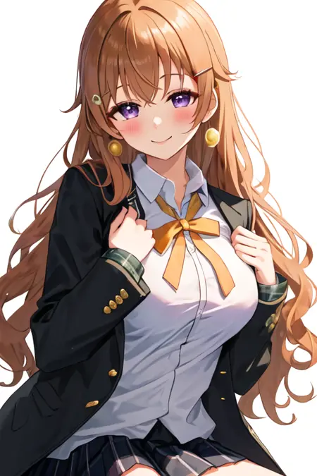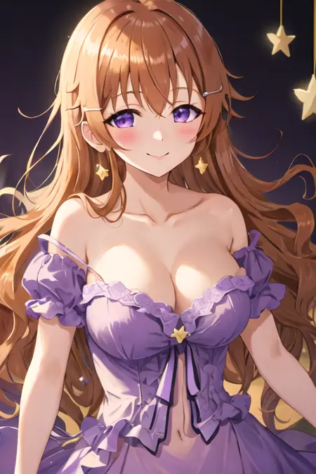 触发词为konoe_kanata_loveliveschoolidolfestivalallstars,推荐标签为:best quality, masterpiece, highres, solo, {konoe_kanata_loveliveschoolidolfestivalallstars:1.15}, long_hair, purple_eyes, bangs, orange_hair, smile, blush, breasts, hair_ornament, wavy_hair, brown_hair
