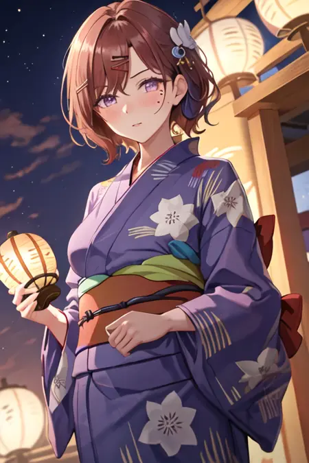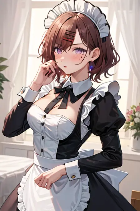 The trigger word is higuchi_madoka_theidolmstershinycolors, and the recommended tags are best quality, masterpiece, highres, solo, {higuchi_madoka_theidolmstershinycolors:1.15}, short_hair, brown_hair, mole, mole_under_eye, bangs, hair_ornament, hairclip, purple_eyes, blush, breasts.