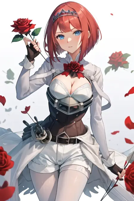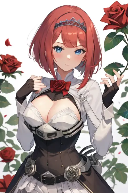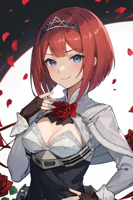 The trigger word is ark_royal_kantaicollection, and the recommended tags are best quality, masterpiece, highres, solo, {ark_royal_kantaicollection:1.15}, red_hair, short_hair, bob_cut, bangs, blue_eyes, hairband, tiara, blunt_bangs, breasts, ribbon, flower, rose, red_flower, red_ribbon.