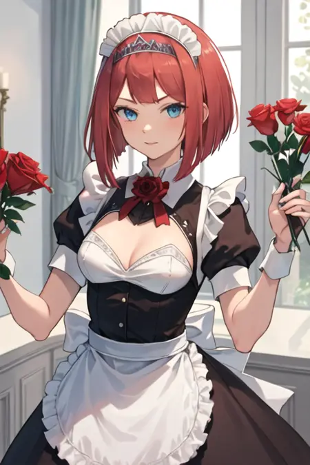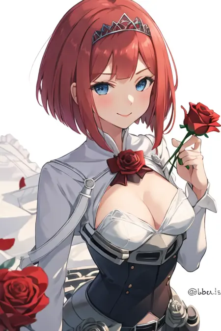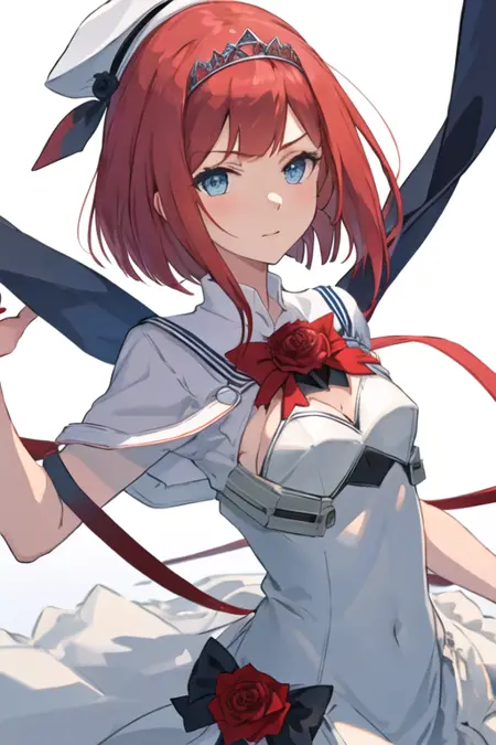 The trigger word is ark_royal_kantaicollection, and the recommended tags are best quality, masterpiece, highres, solo, {ark_royal_kantaicollection:1.15}, red_hair, short_hair, bob_cut, bangs, blue_eyes, hairband, tiara, blunt_bangs, breasts, ribbon, flower, rose, red_flower, red_ribbon.