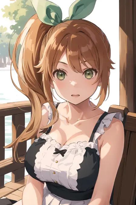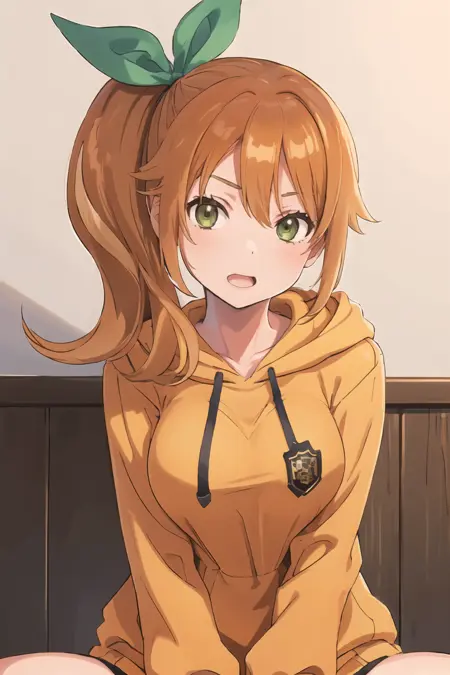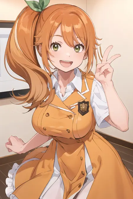 If needed, add green eyes, orange hair, side ponytail, hair ribbon