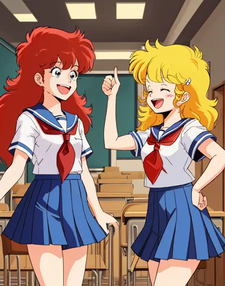This Lora can generate images of A-Ko, B-Ko and C-Ko, but tagging them at the front and describing what they look like, something along the lines of: