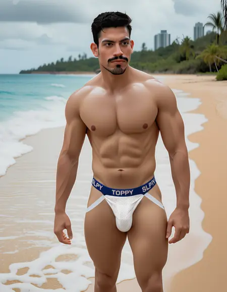 Power-bottom line: It plays well with character/person LoRAs and doesn't try to alter body/faces - just the jockstrap, ma'am, and nothing but the jockstrap.