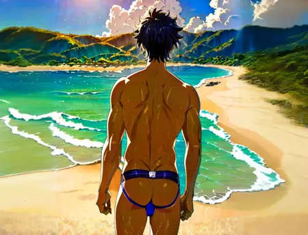 Power-bottom line: It plays well with character/person LoRAs and doesn't try to alter body/faces - just the jockstrap, ma'am, and nothing but the jockstrap.