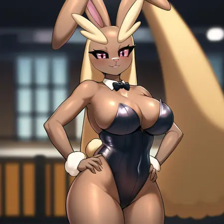 Helpful Positives: furry, rabbit ears, black sclera, brown fur, body fur, fluff, fur cuffs